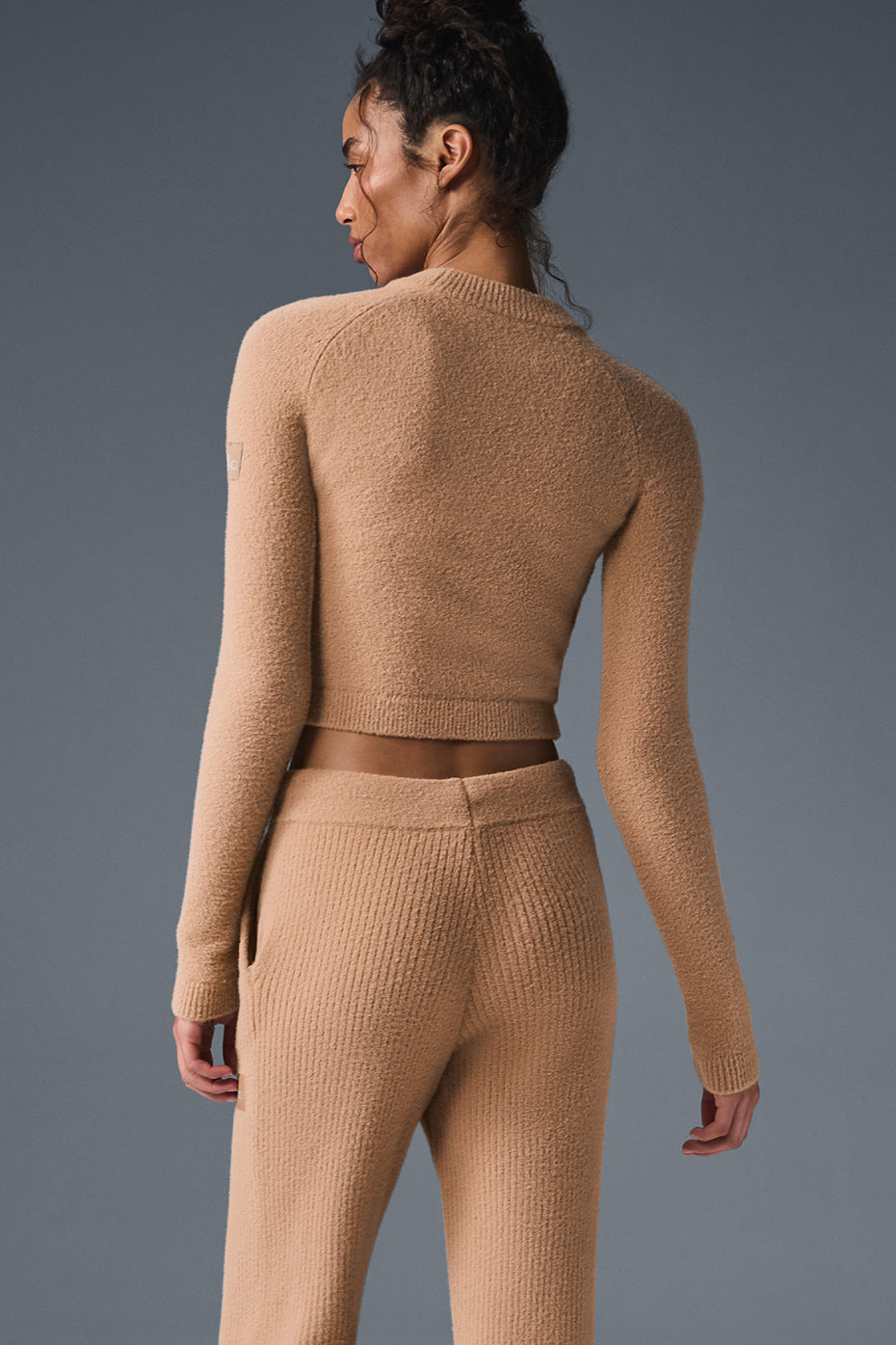 Snuggle season is here! This cropped sweater is soft, chic, and so versatile. Wear it during your warm-up on chilly mornings at the studio, at home for weekend lounge sessions, and definitely pair it with the matching pants for the perfect look.