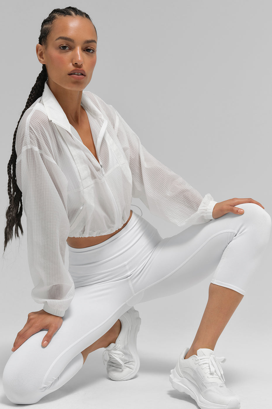 Bring a modern edge to functional outerwear with the Game Time Full-Zip Jacket. This style has a cropped silhouette, adjustable bungee hem, and subtle, architectural lines that add a little more detail to a clean look. It’s the perfect lightweight layer to toss on post-studio or wear as a statement piece.